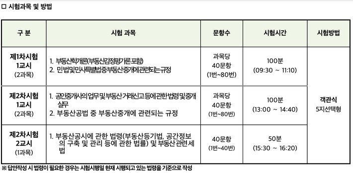 공인중개사 시험은 1차 시험과 2차 시험으로 나누어져 있으며