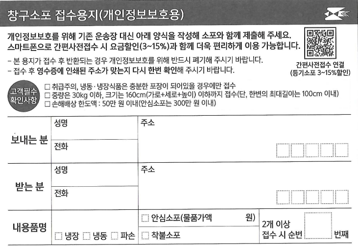 창구소포 접수용지라는 것이 생겨서